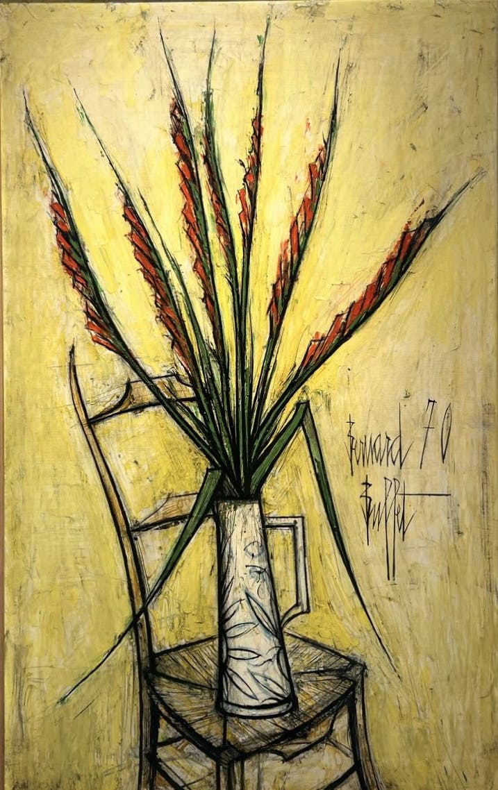 Bernard Buffet est introduit auprès de collectionneurs par le peintre Jean Aujame et est récompensé à 20 ans par le Prix de la Critique en même temps que Bernard Lorjou. Très populaire, il est détesté par les élites qui lui reprochent d’être trop prolixe. Pourtant Renoir et Picasso le furent aussi….On lui attribue quelque 8000 toiles, ainsi que de très nombreux dessins, lithographies et gravures.